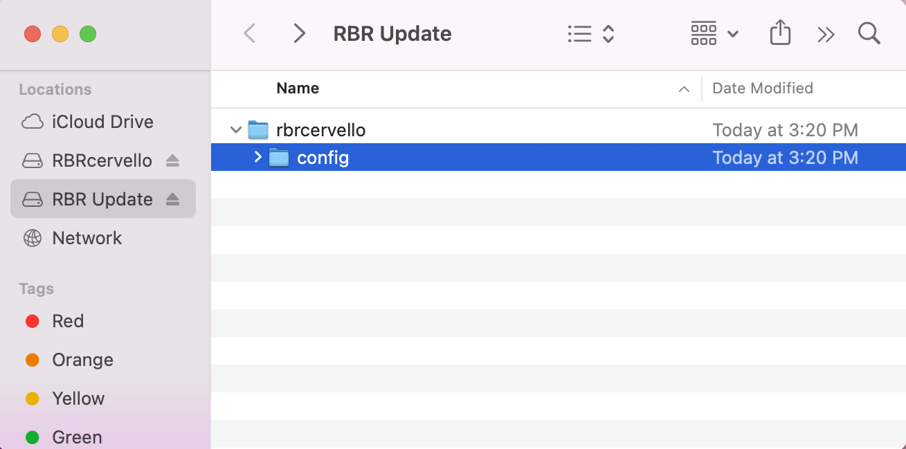 If you are updating the RBRcervata firmware, create the update folder in rbrcervello and extract the provided update bundle (extracted, the file name will end with the extension .rbrbundle) into it.