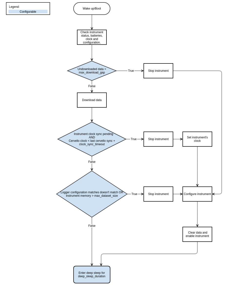The RBRcervata's behaviour can be described using its configuration files, Cervello configuration and Instrument configuration. The former defines how the RBRcervata is going to behave while the former dictates the configuration to be loaded into each instrument for each deployment.