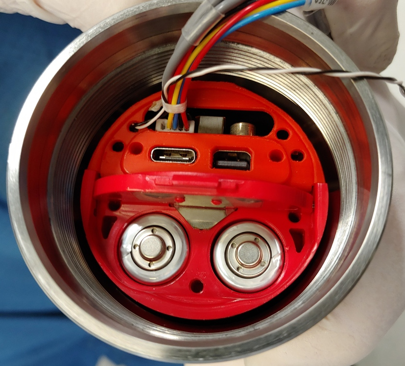 - The half of the instrument with the nosecone contains the accelerometer, battery carriage assembly, CPU and its power supply.
