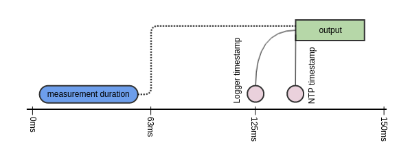 Logger readings will be timestamped no earlier than 63ms and no later than 125ms from when the reading was completed. The resolution of logger timestamps is 63ms. Logger output of the timestamped sample will occur within 63ms of the indicated timestamp.