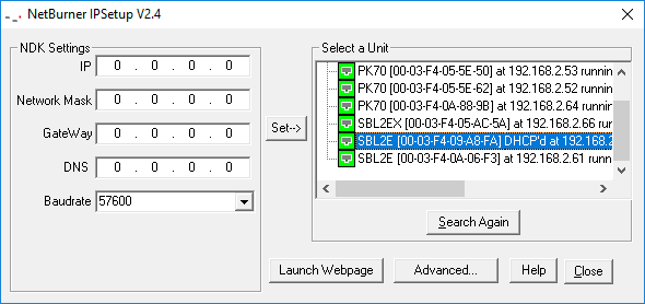 To configure the network controller, a Windows-only executable is required to run on a host on the same subnet (same UDP broadcast domain) as the instrument.