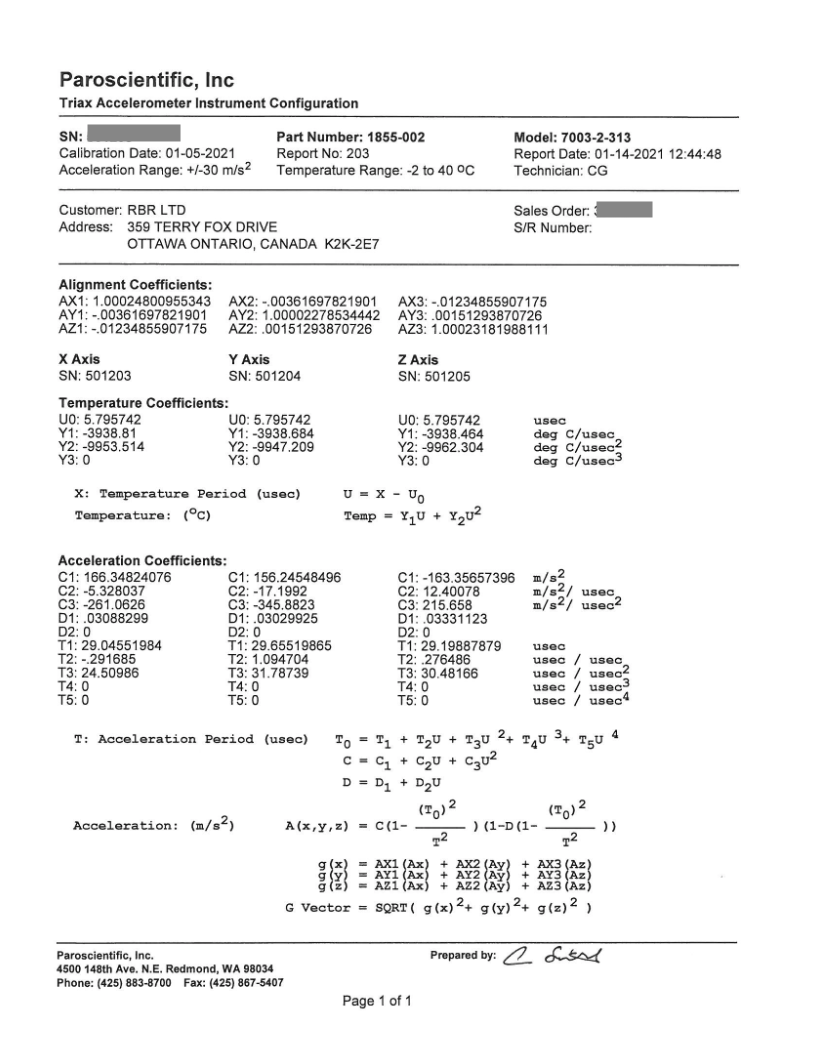 An example of Paroscientific, Inc. triax accelerometer instrument configuration sheet |