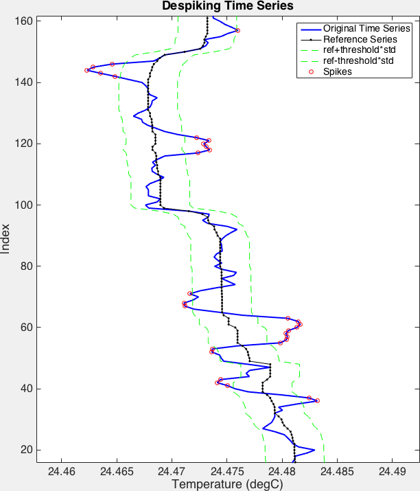 [rsk, spike] = RSKdespike(rsk,'channel','Temperature','profile',3:5,'direction','down','threshold',4,'windowLength',11,'action','nan');