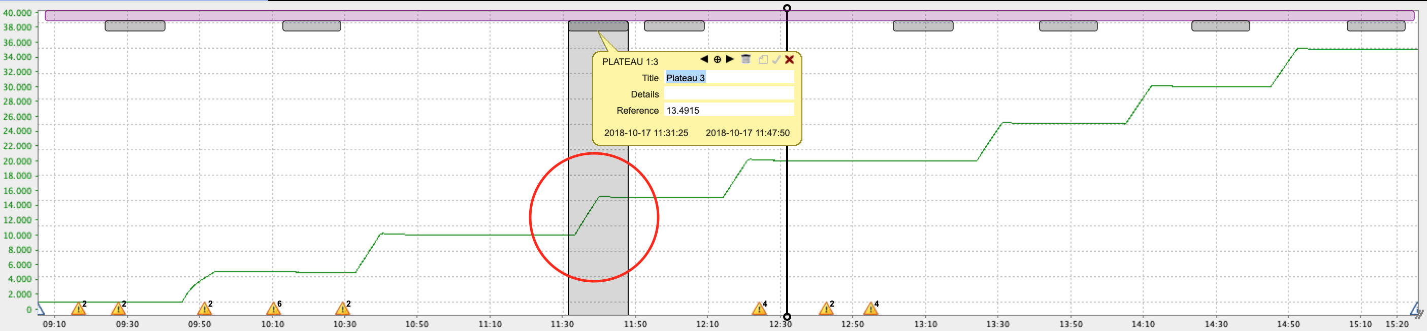 Clicking the Create plateau button a second time will create a new plateau marker to the right of any existing plateaus.
