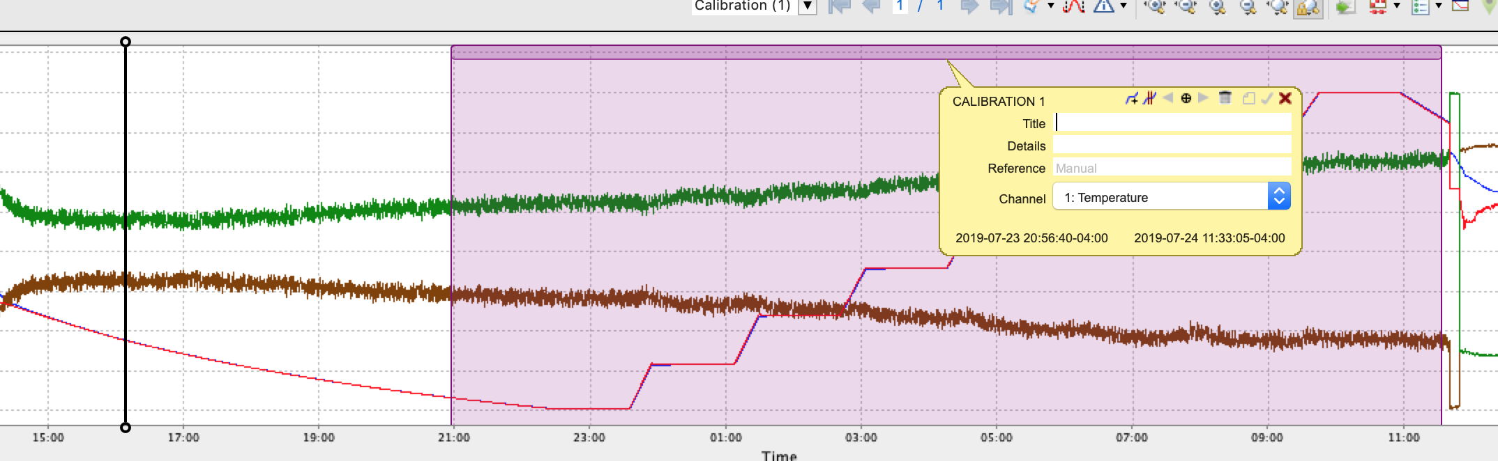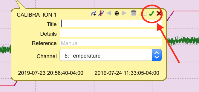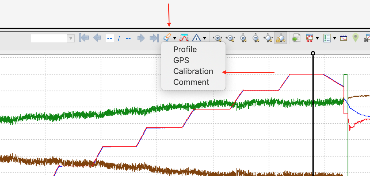 From the plot toolbar select the annotation creation button. Select the Calibration option from the dropdown menu.