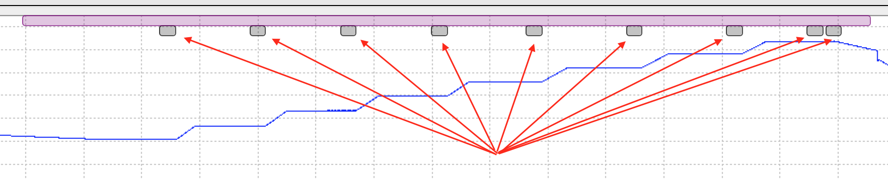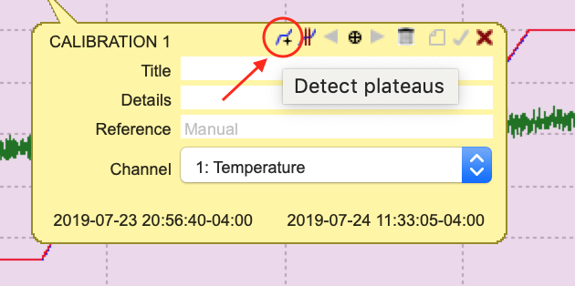All detected plateaus will be visible as grey markers under the calibration region marker.