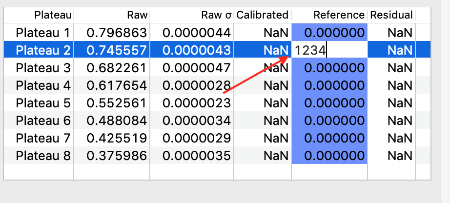 Click the Reference cell on the plateau to be edited