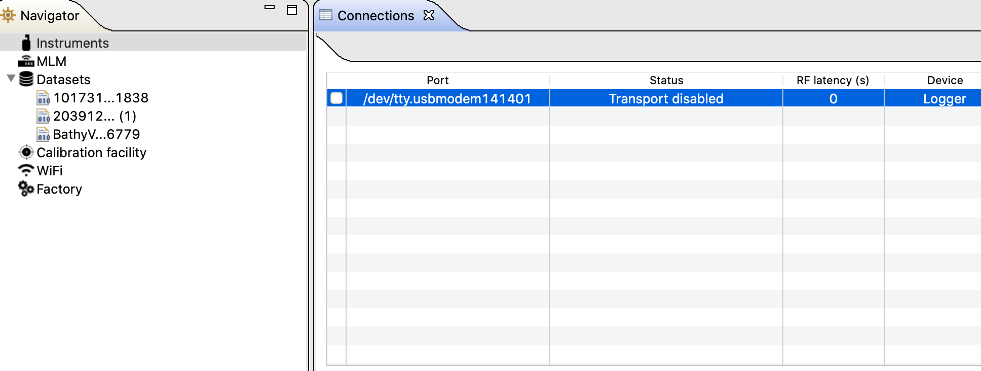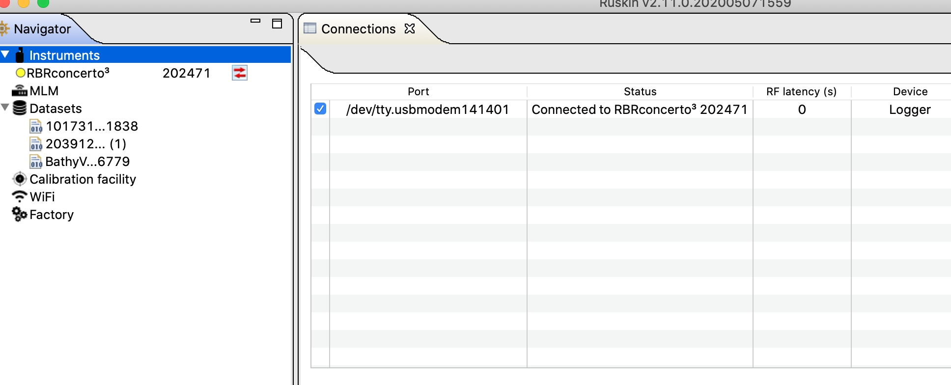 As seen below, the RBRconcerto3 serial number 202471 is still connected to the port in the first image (port checked) and in the second image, the port has been deselected.