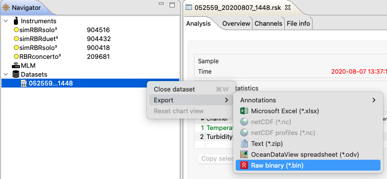 Extract your dataset (only Desktop format) from the Ruskin software as a raw binary file.