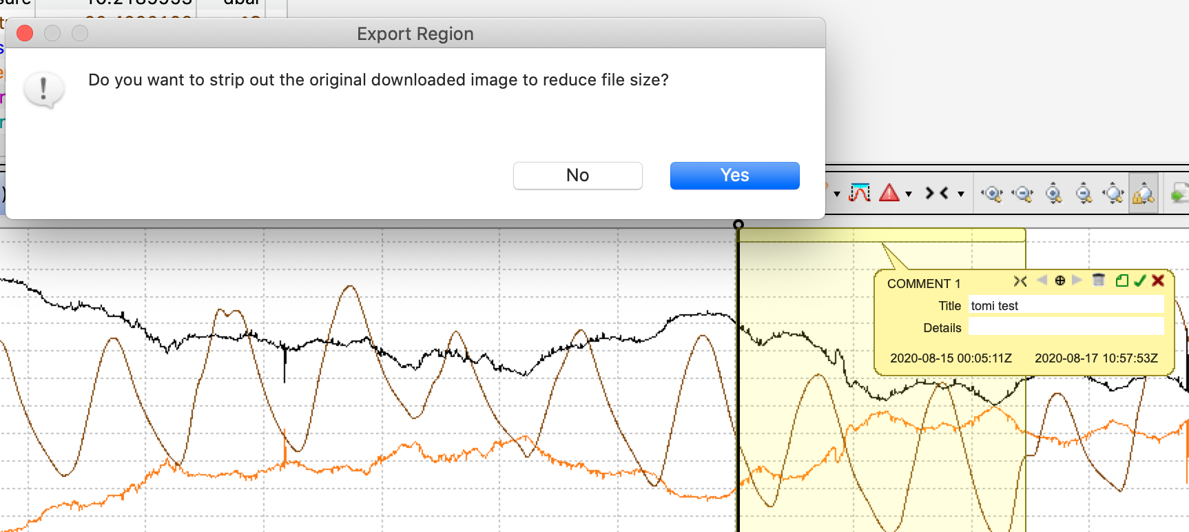 2. Once a comment has been created for the region you wish to export, you can then select the "Export region" button from the "Annotation" menu.