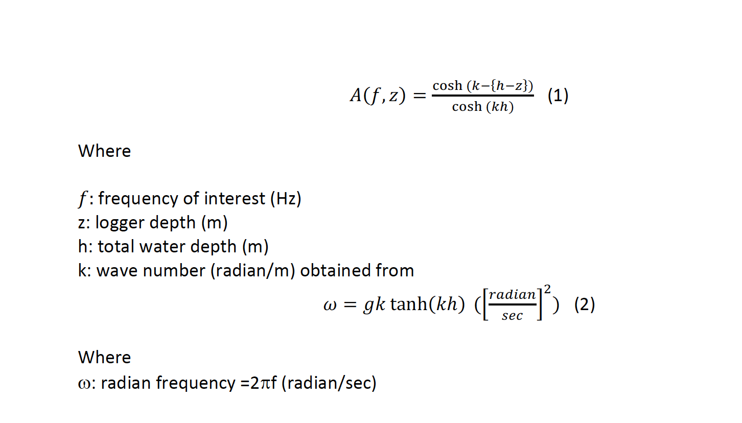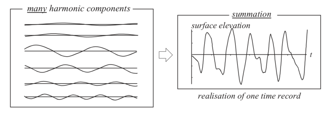 Measuring waves using a pressure transducer requires attenuation correction to the raw signal so that the actual wave signal at the surface could be correctly reflected (Figure 1). According to linear wave theories, this could be achieved by Discrete Fourier Transform (DFT), since all wave signals could be considered as a composition of waves with different frequencies, and we can treat each frequency component separately (Figure 2).