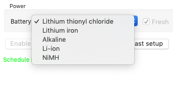 Use Ruskin simulator to determine the best battery chemistry for your instrument. Select the instrument to simulate, and the battery dropdown menu will show all chemistry options available, sorted from highest to lowest capacity.
